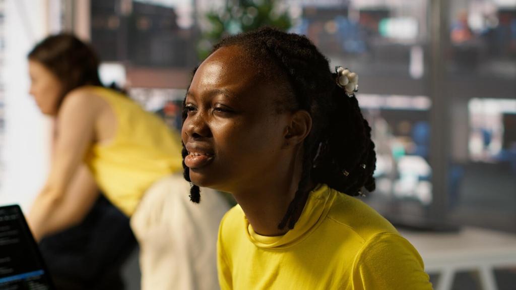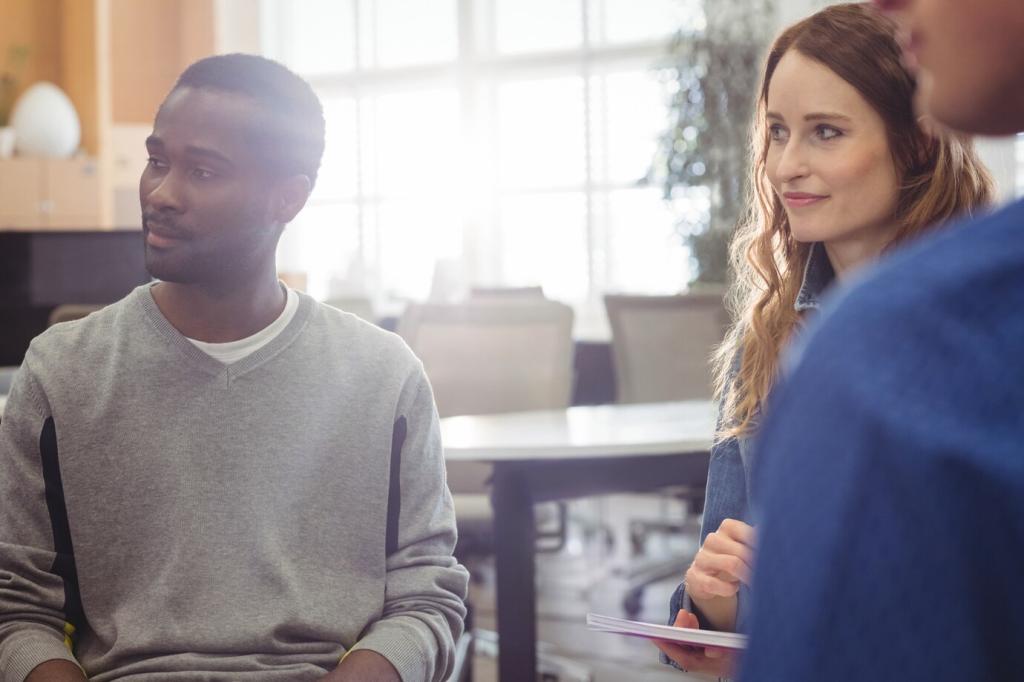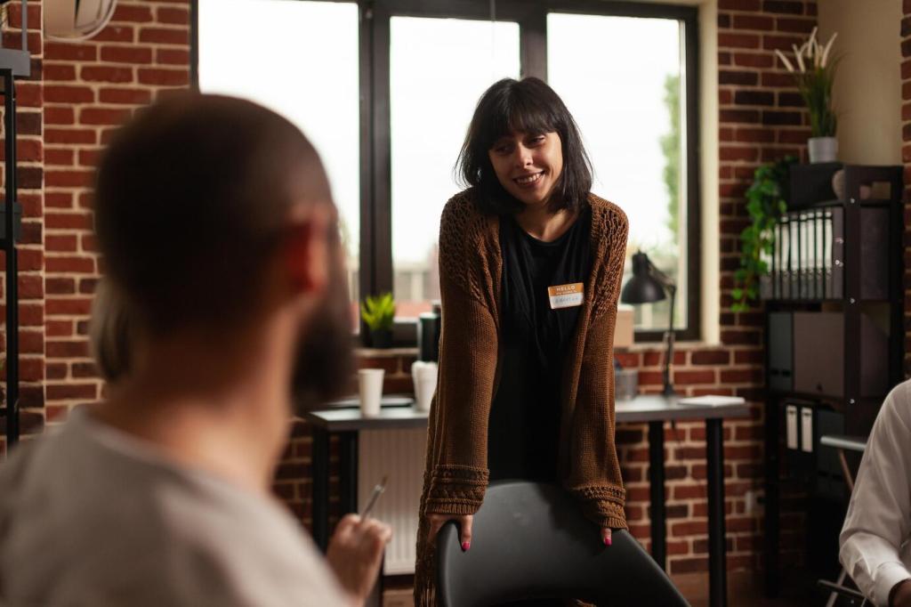 Atme durch die Nase in den Bauchraum, zähle vier ein, sechs aus. Lass die Schultern schwer sinken. Mit jeder Ausatmung verlängert sich die Bewegung, Gesten werden runder, und deine Stimme findet verlässlich mehr Tragfähigkeit.